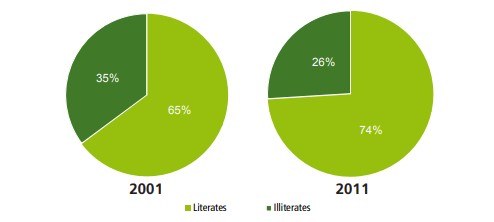 The figures from Census India 2011 on state of literacy gives a little hope when compared with 10 years old data.